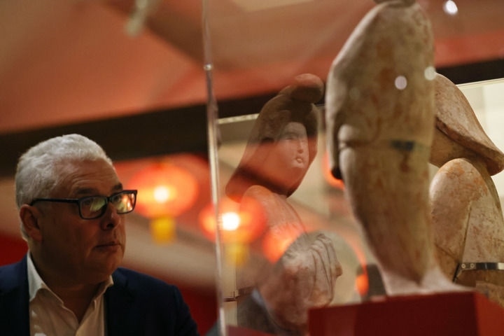 2024年11月18日,在位于法國巴黎的吉美國立亞洲藝術(shù)博物館,一名觀眾參觀“中國·唐——一個(gè)多元開放的朝代(7至10世紀(jì))”展覽。新華社記者 高靜 攝