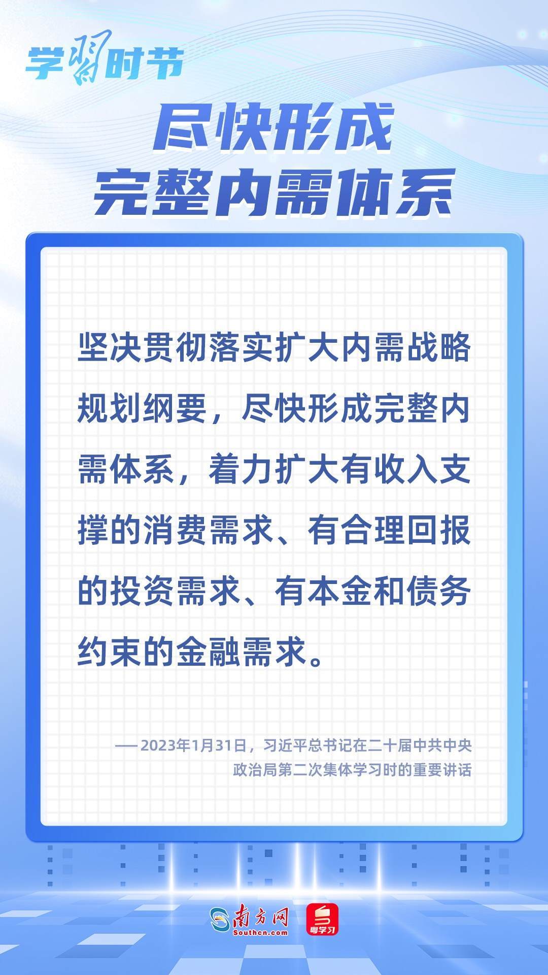 內(nèi)需是經(jīng)濟(jì)發(fā)展的基本動(dòng)力,實(shí)施擴(kuò)大內(nèi)需戰(zhàn)略,是保持我國經(jīng)濟(jì)長(zhǎng)期持續(xù)健康發(fā)展的需要。習(xí)近平總書記多次在不同場(chǎng)合就擴(kuò)大國內(nèi)需求作出一系列重要論述和重要部署,讓我們一起學(xué)習(xí)。