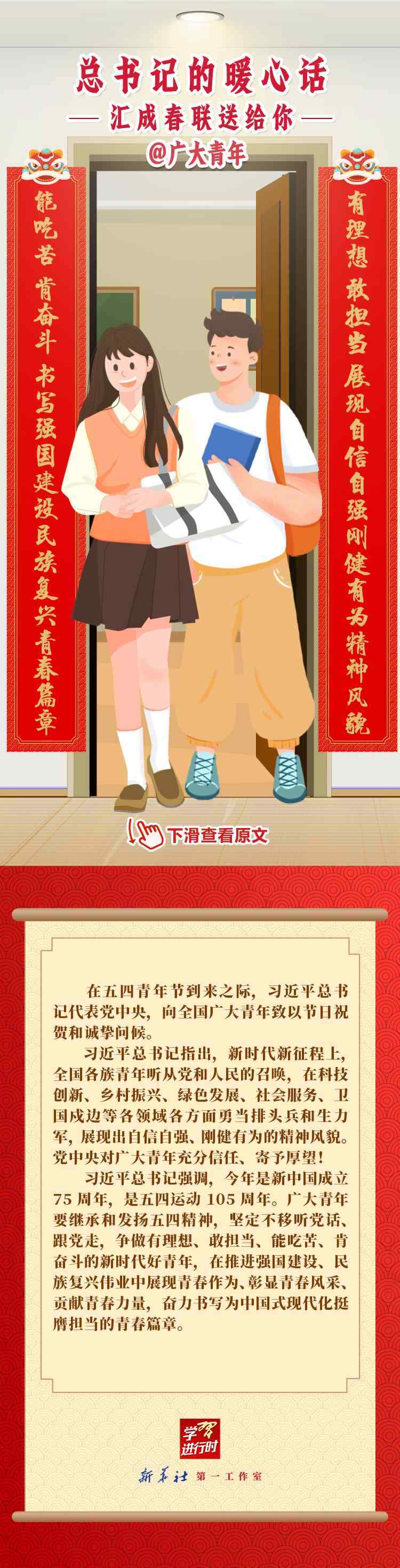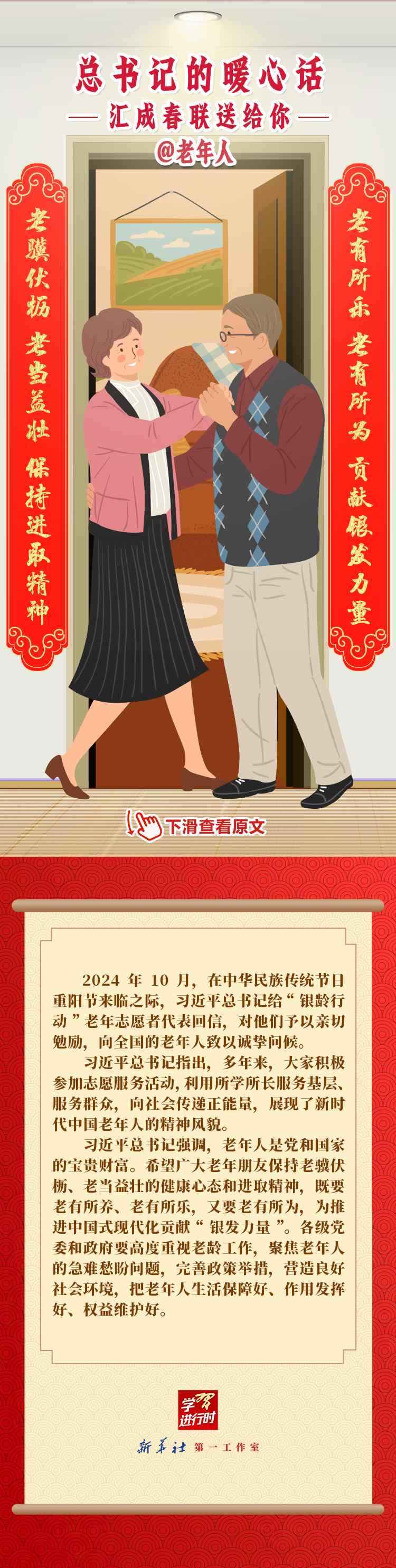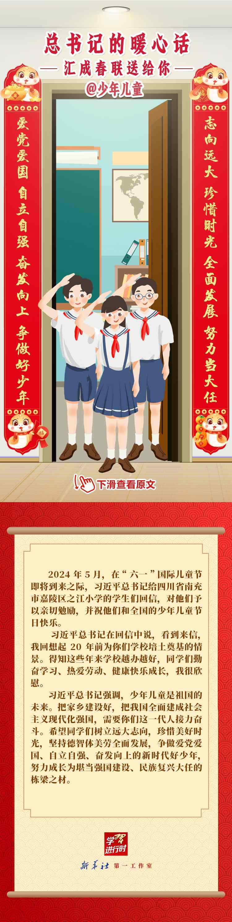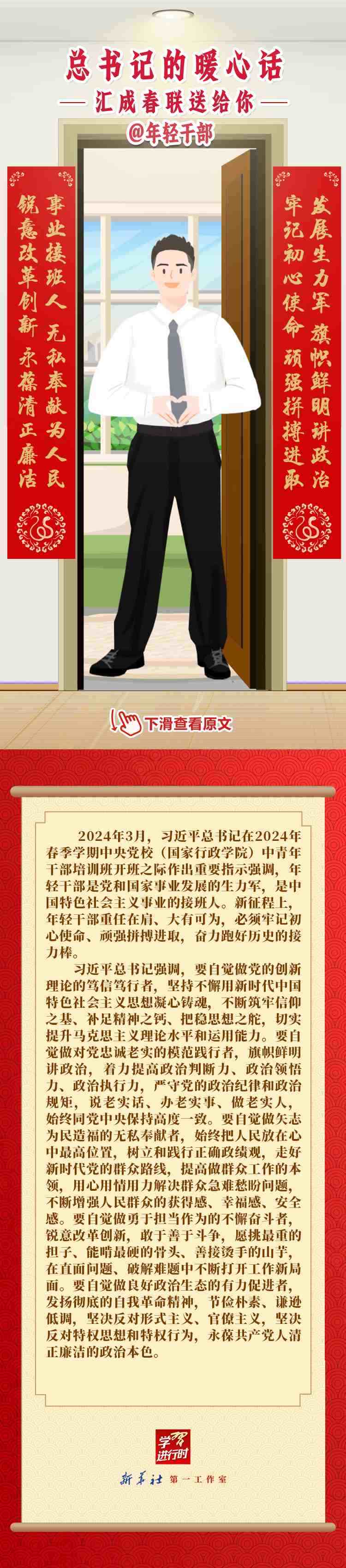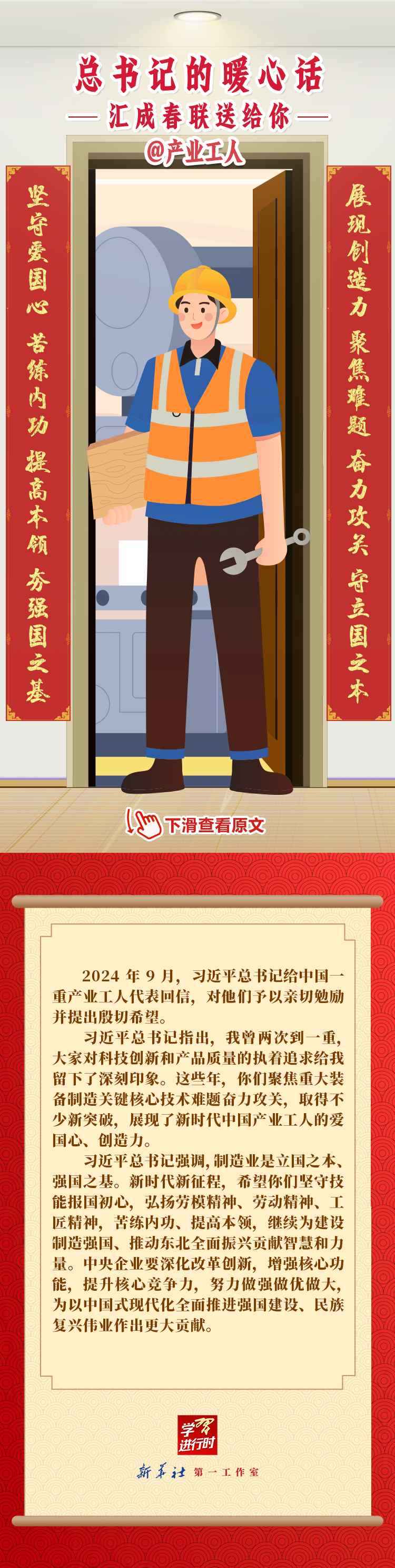 【學(xué)習(xí)進(jìn)行時(shí)】過春節(jié),貼春聯(lián),寄托人們對(duì)新年的美好愿望。過去一年,習(xí)近平總書記在不同場(chǎng)合點(diǎn)贊各行各業(yè)奮斗者,說了許多暖心話。新春之際,我們匯編成聯(lián),向新征程上的每一位“主角”致敬,送上新春的祝福。