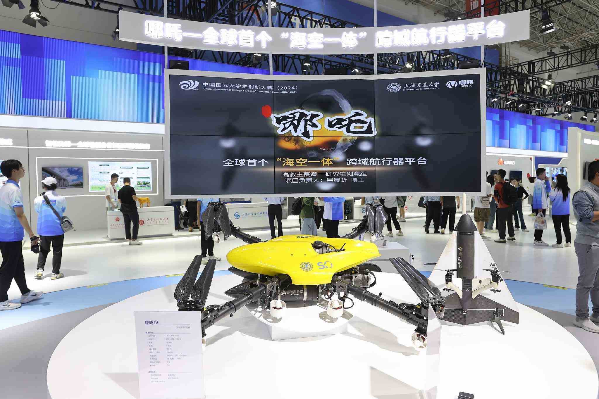 △2024年10月12日至15日,中國國際大學(xué)生創(chuàng)新大賽總決賽及同期活動在上海舉行。來自上海交通大學(xué)的“哪吒——全球首個‘??找惑w’跨域航行器平臺”項目奪得冠軍。