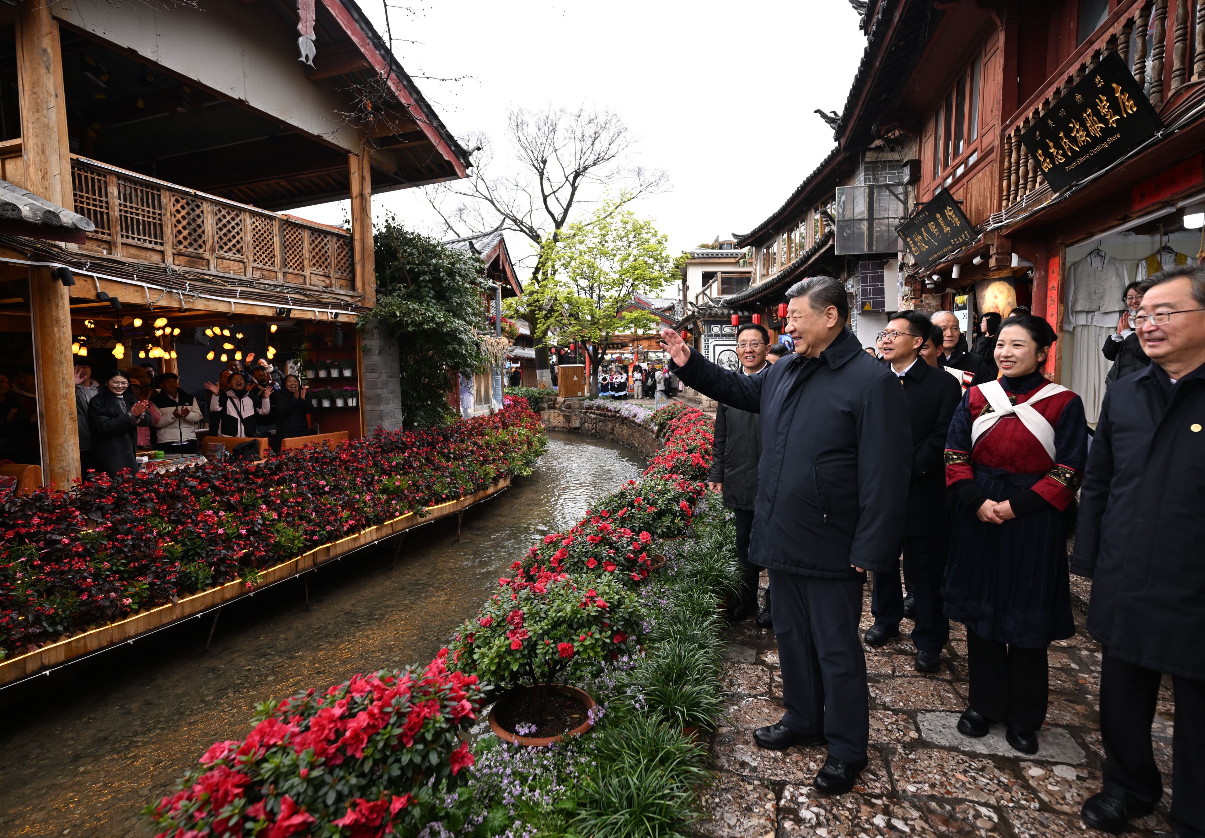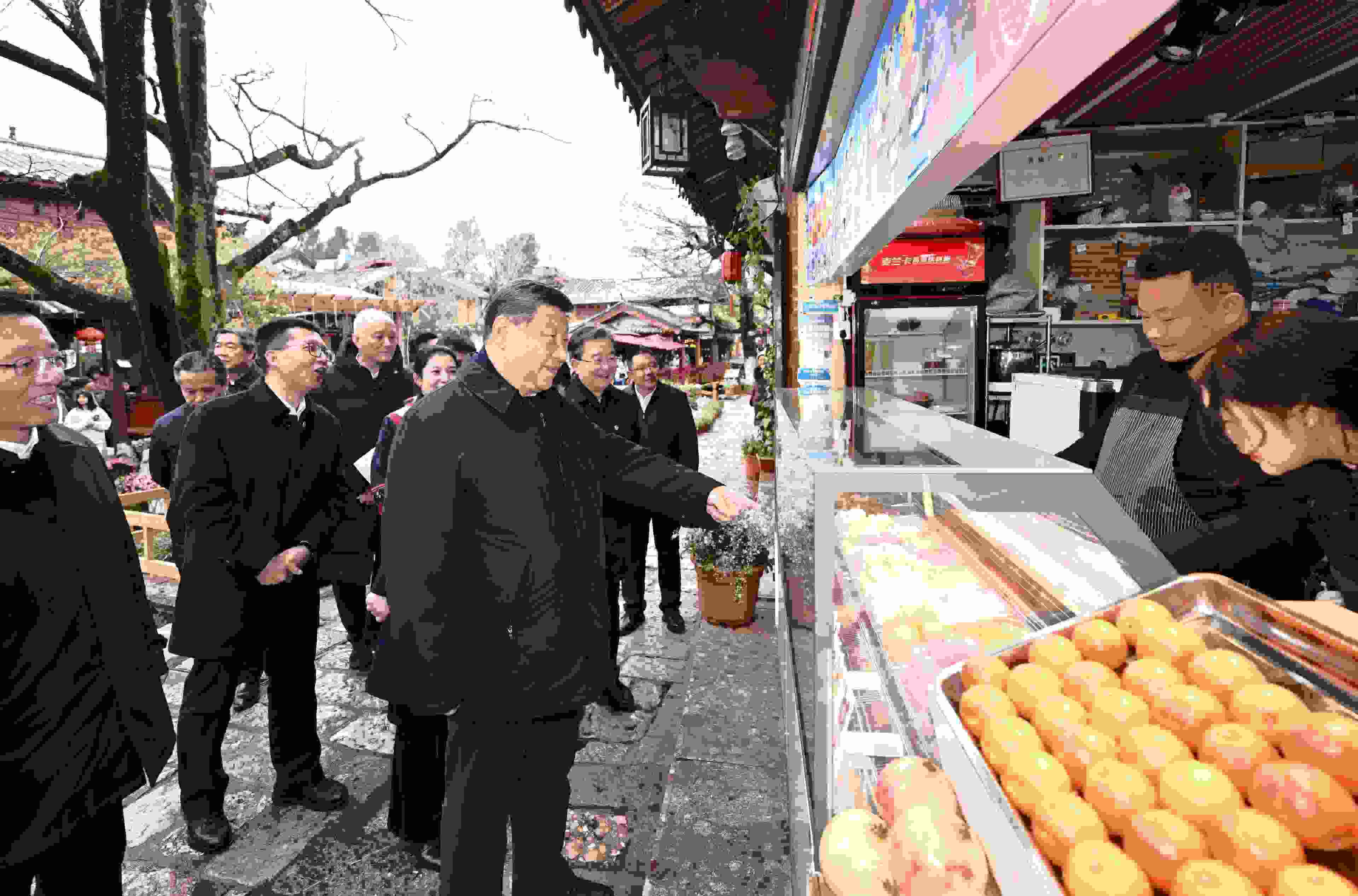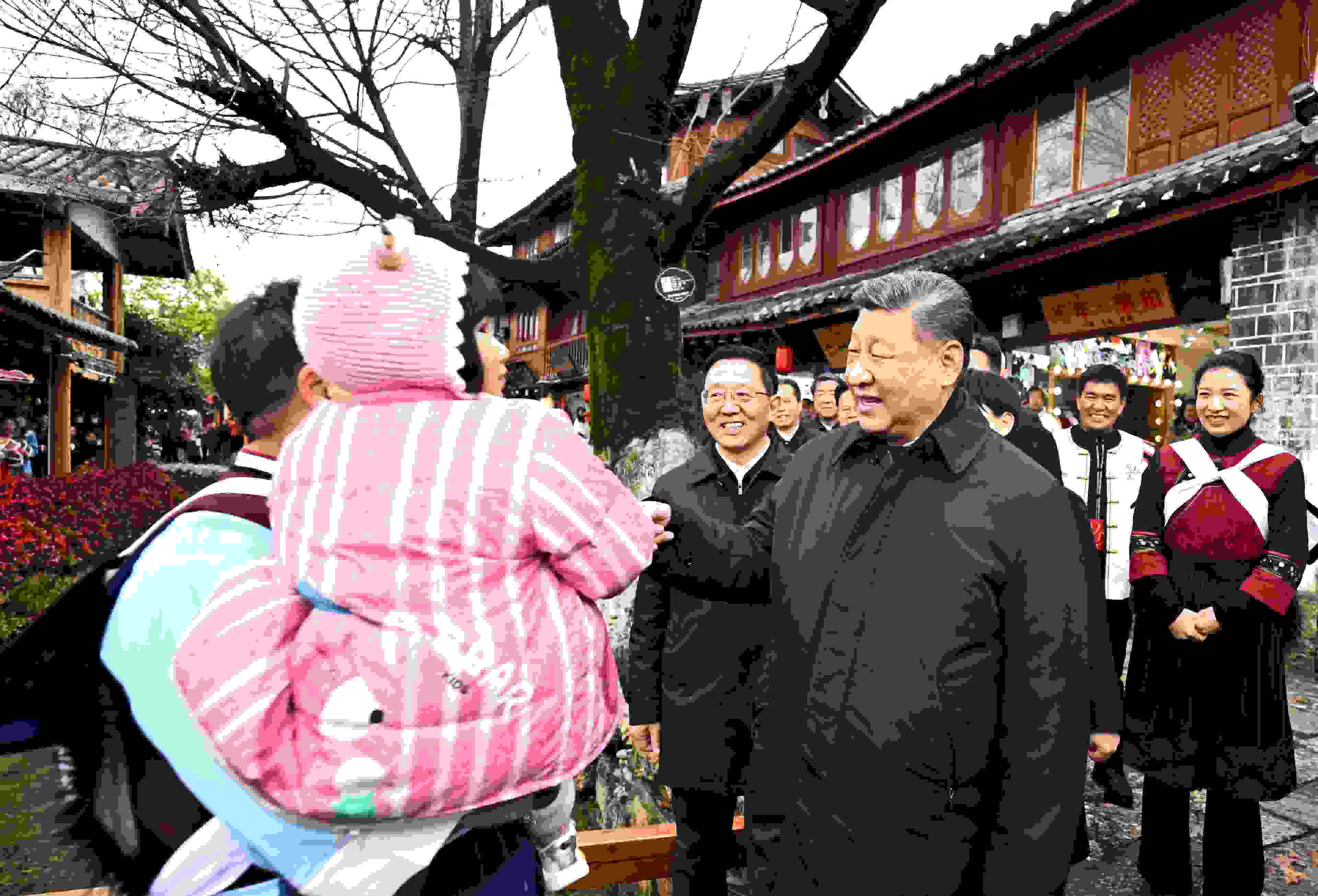 習近平總書記19日下午來到云南麗江古城,沿著石板路邊走邊看。當?shù)鼐用窈脱赝居慰褪譄崆榈叵蚩倳泦柡?,習近平不時停下腳步同大家親切交流。習近平說,這里的文化、風光、民俗都非常吸引人,文旅融合促進了經(jīng)濟發(fā)展。文旅產(chǎn)業(yè)要走一條持續(xù)、健康的發(fā)展之路。希望你們的生活幸福安康,就像納西族的大姓“和”姓一樣,和和美美。