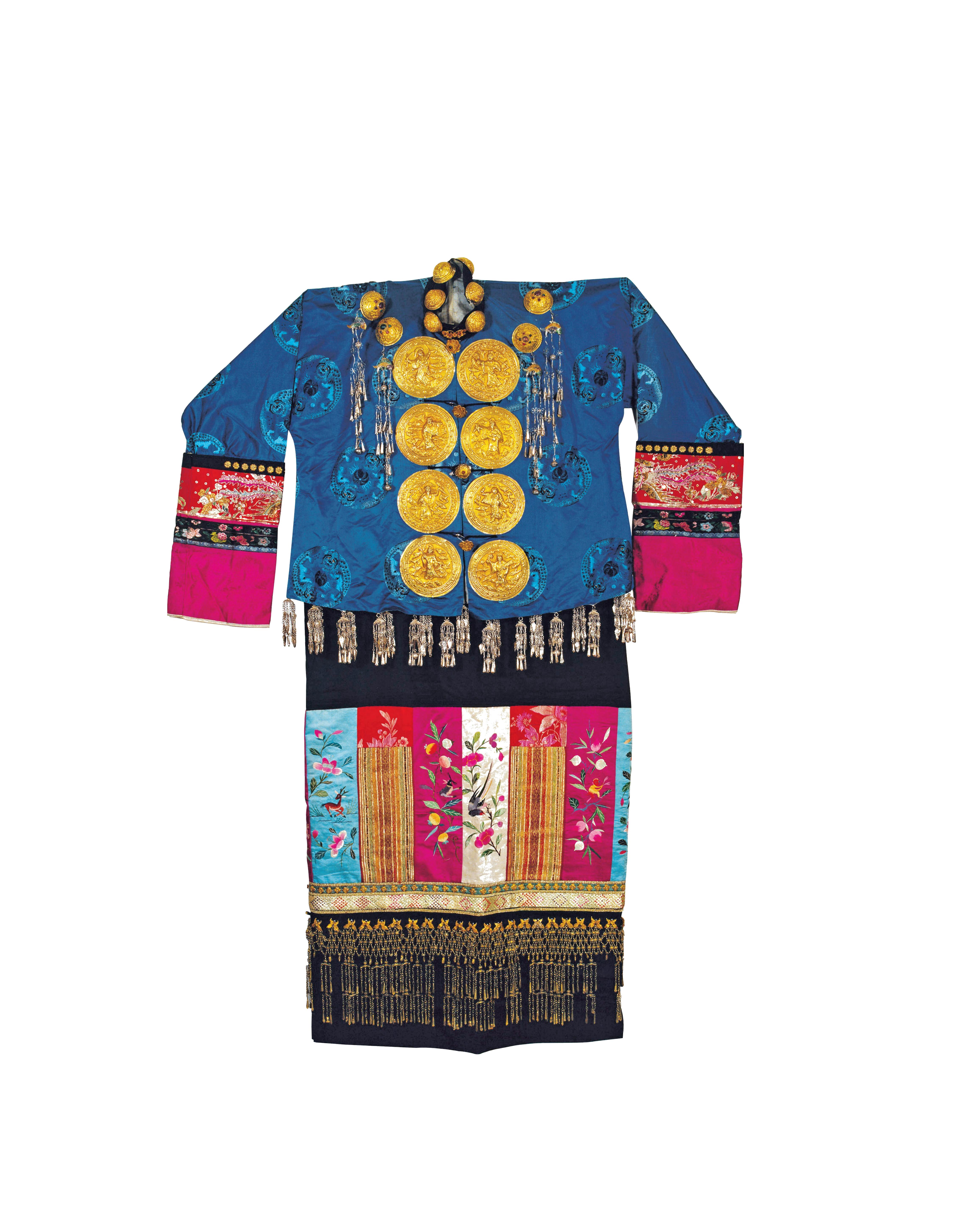 衣身鑲嵌各式金銀泡、金銀花