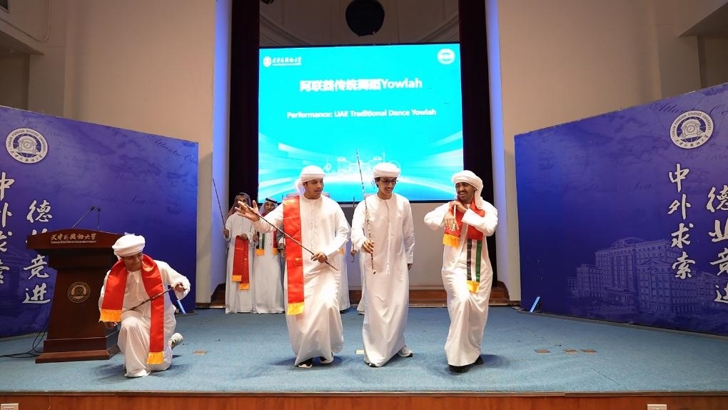 天津外國語大學的校園里,海棠盛開,綠意盎然。在此次交流學習項目的開班儀式上,中阿兩國學生代表以精彩演出互致青春問候:中國民族樂器齊奏《云之南》、中阿雙語演唱《我們都一樣》、節(jié)奏明快的阿聯(lián)酋傳統(tǒng)舞蹈點燃活動現(xiàn)場……