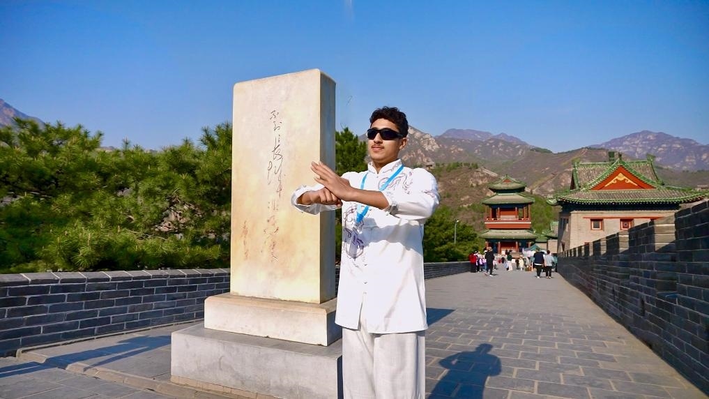 又是一年春好時。4月6日,站在長城上,愛好中國功夫的阿聯(lián)酋學生哈姆丹·艾哈邁德特意穿上嶄新的中式服裝,表演了一套中國功夫,一招一式頗有氣勢。“我想在中國學習中文和更多功夫!”哈姆丹還是乒乓球愛好者,整天球不離手。他期待這次有機會和中國朋友一起切磋球技。