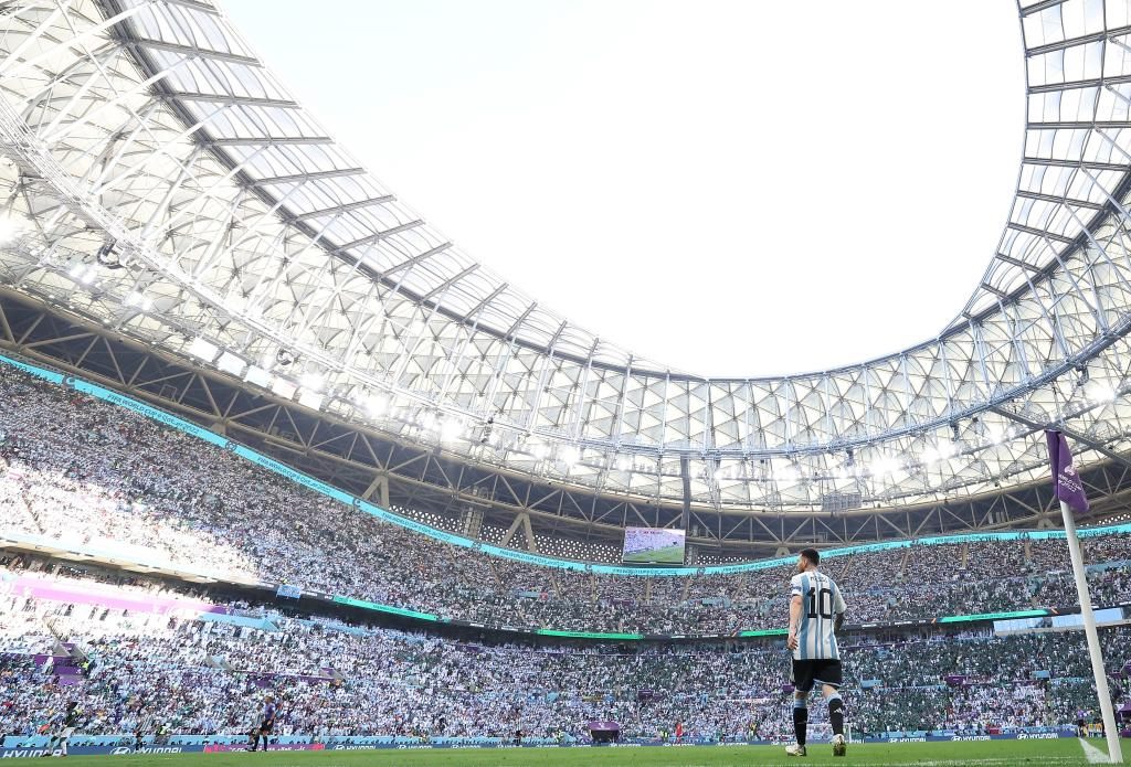 11月22日,在卡塔爾盧賽爾球場進(jìn)行的2022卡塔爾世界杯足球賽C組比賽中,阿根廷隊(duì)以1比2不敵沙特阿拉伯隊(duì)。新華社記者曹燦攝