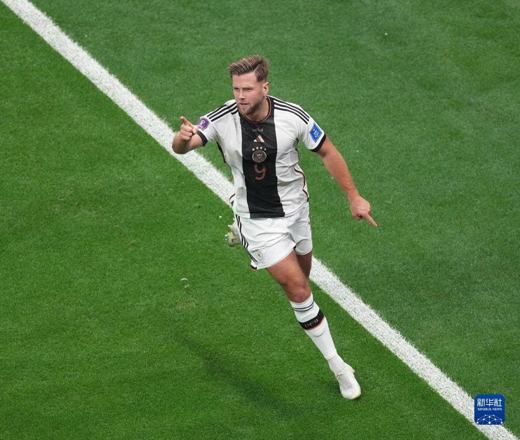 11月27日,德國隊(duì)球員尼克拉斯·菲爾克魯格在比賽中進(jìn)球后慶祝。新華社記者 陳誠 攝