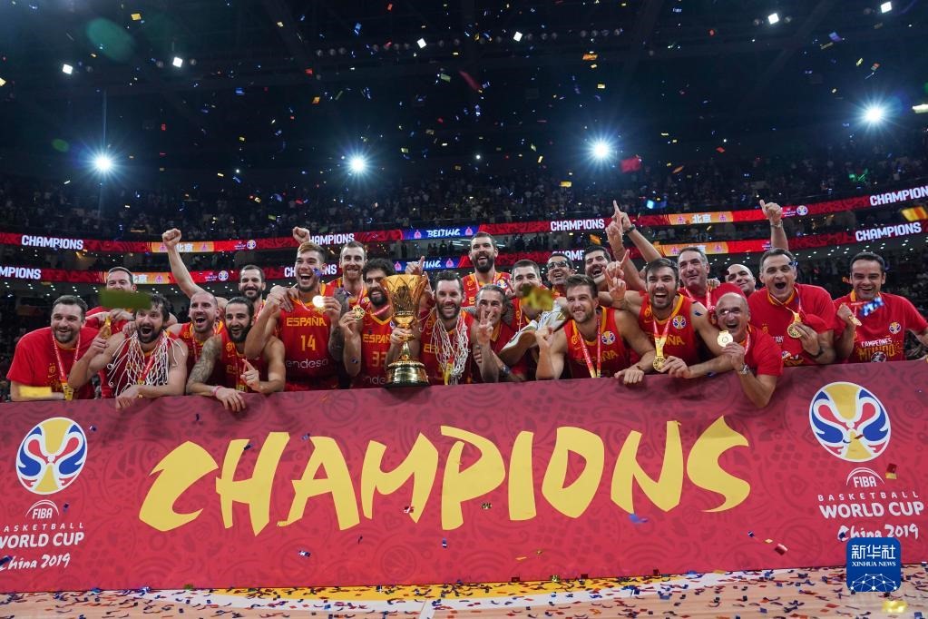 這是2019年9月15日,西班牙隊(duì)在國際籃聯(lián)籃球世界杯奪冠后慶祝。新華社記者 鞠煥宗 攝