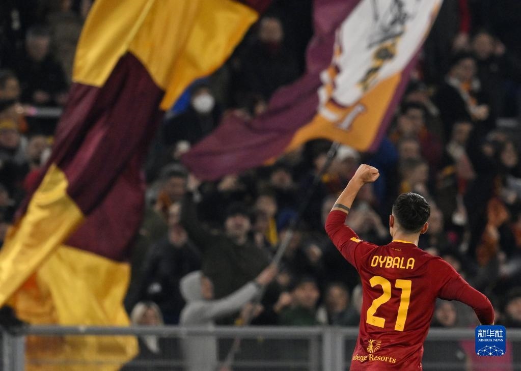 1月15日,羅馬隊(duì)球員迪巴拉進(jìn)球后慶祝。新華社發(fā)(阿爾貝托·林格利亞攝)