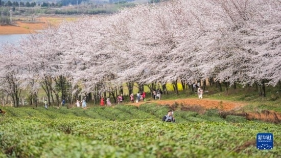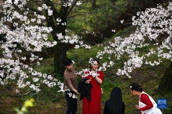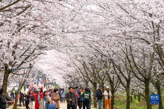 近日,貴州省貴安新區(qū)櫻花園內的2.4萬畝櫻花競相綻放,如雪似霞,吸引游客前來賞花觀光。
