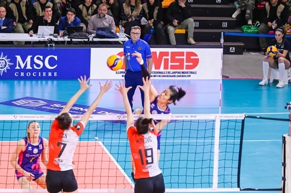 朱婷(4號(hào))與貝麗恩攔網(wǎng)。圖片來源:歐聯(lián)杯官網(wǎng)