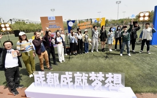 此前,成都大運會組委會舉辦了成都大運會歌曲大眾征集活動,吸引了全球音樂人及音樂愛好者參與。目前,一批優(yōu)秀的成都大運會歌曲已從數(shù)十個國家和地區(qū)的2700余件音樂作品中脫穎而出,在國內(nèi)高校掀起傳唱熱潮。