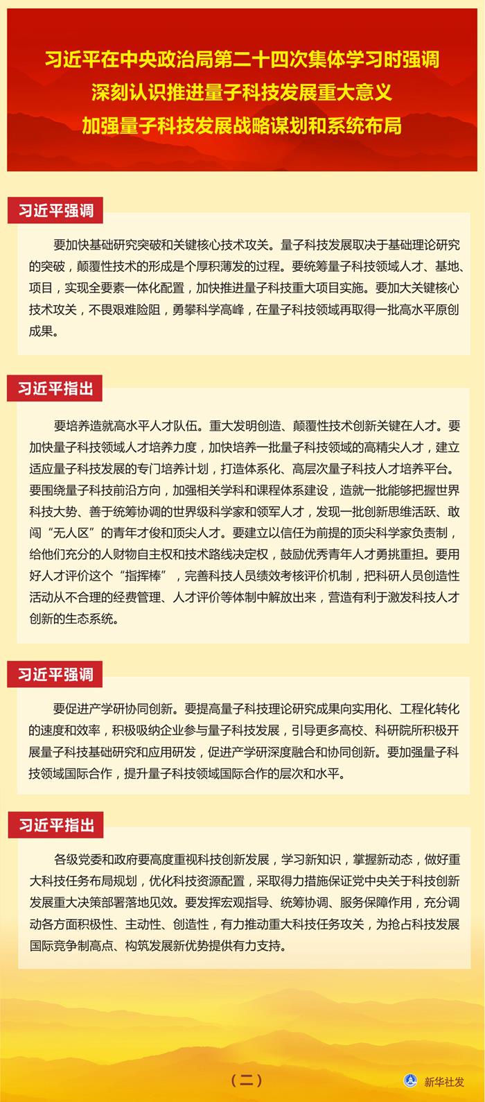 習近平在中央政治局第二十四次集體學習時強調 深刻認識推進量子科技發(fā)展重大意義 加強量子科技發(fā)展戰(zhàn)略謀劃和系統(tǒng)布局