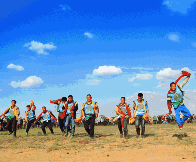 即摔跤,是蒙古族“男兒三藝”之一,屬蒙古族傳統(tǒng)體育項(xiàng)目,以錫林郭勒盟為中心分布于整個(gè)內(nèi)蒙古地區(qū)。2006年,入選第一批國家級(jí)非物質(zhì)文化遺產(chǎn)名錄。