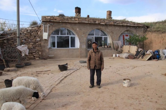 2022年5月15日,呼和浩特市長城科普學(xué)會會員來到清水河縣城關(guān)鎮(zhèn)銀滾山長城公園北面的邊墻壕村考察明大邊,在村口聽見狗吠,順著聲音走到邊墻人家門前,一只雞站下來一直看著你,等你走近的時候才扭著身子慢慢跑開;你也會聞到羊糞的味道,它們從大門縫里鉆出來,稀罕地與我們打著招呼。男主人在羊圈里清理羊糞,他抬起頭和我們說話,老人耳背,我們連說帶比劃才明白:老漢叫呂占全, 今年90歲,老伴叫郝二毛旦 ,81歲,家里只剩老兩口,兒女們都在市里工作。他們二老是邊墻壕村的守護者,世世代代一直與邊墻為伴。