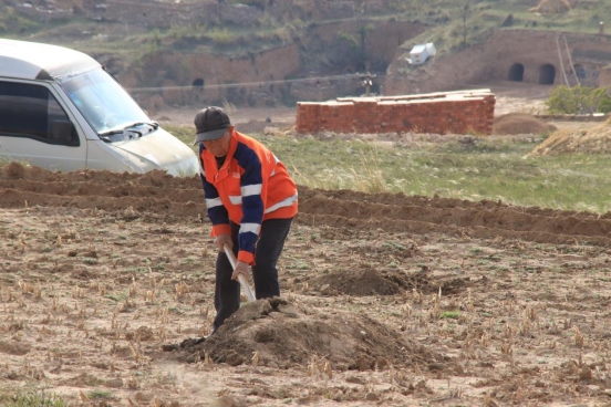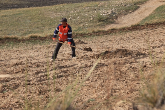 邊墻壕村是個小村莊,在村口遇見一對夫婦正在播種,據(jù)介紹全村現(xiàn)有20多戶人家四五十口人,年輕人都出去打工了,剩下些村民老人居多。讓我們再次把鏡頭對準邊墻下春播的百姓。