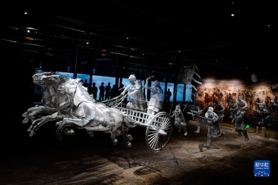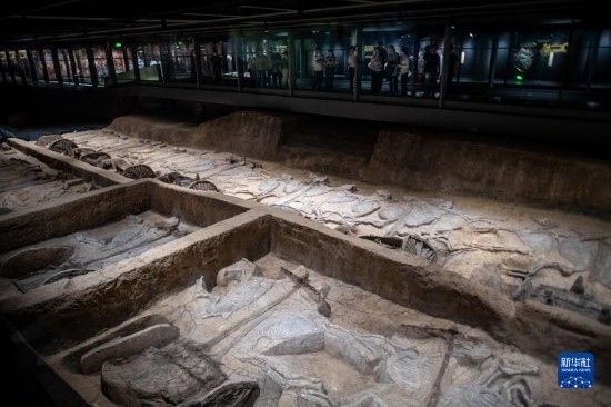 5月20日,在熊家冢國(guó)家考古遺址公園,游客在車馬坑前參觀。