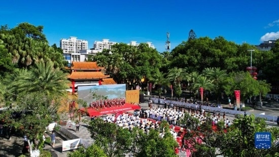 這是7月8日拍攝的五指山“上山爽一夏 故園·畢業(yè)季”暨州府故園文化節(jié)啟動(dòng)儀式現(xiàn)場。