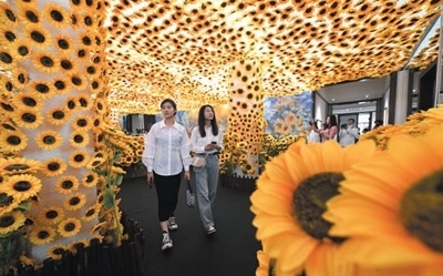 觀眾在天津數(shù)字藝術(shù)博物館全景數(shù)字藝術(shù)互動(dòng)大展預(yù)展上參觀。新華社記者 孫凡越攝