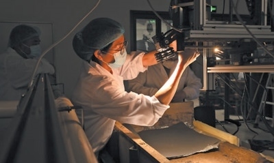 數(shù)字采集考古人員在實(shí)驗(yàn)室,對(duì)三星堆出土文物進(jìn)行高光譜掃描。廣漢市委宣傳部供圖