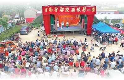 傍晚時(shí)分,天氣漸漸涼爽。河南許昌鄢陵縣彭店鎮(zhèn)謝坊村,村委會(huì)大院擠滿了人。72歲的老戲迷趙培龍手搖蒲扇,守在戲臺(tái)最近的位置……聽說村里來了戲班,他早早備好小馬扎,“每隔一段時(shí)間,就想聽聽劇團(tuán)的戲,好著哩!”