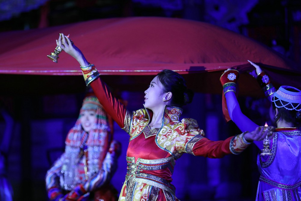 該劇將郡王府作為舞臺(tái),以立體場(chǎng)景為襯托,將鄂爾多斯婚禮等融入其中,頂碗舞、筷子舞、酒盅舞等舞蹈形式穿插,精妙的設(shè)計(jì)、精彩的舞蹈和跌宕的劇情,既再現(xiàn)了歷史,也展現(xiàn)了郡王府悠久的歷史文化以及伊金霍洛旗豐富的文旅資源和獨(dú)特的文化魅力。