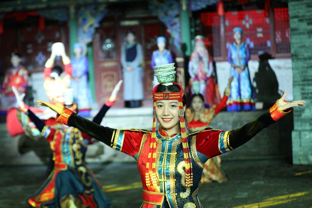 歡快的音樂(lè)聲響起,一群演員衣袂飄飄,在變幻的燈光下翩翩起舞,現(xiàn)場(chǎng)觀眾沉浸其中,隨著舞者的腳步,步入郡王府內(nèi),與演員們一起,回溯歷史,見(jiàn)證變遷。