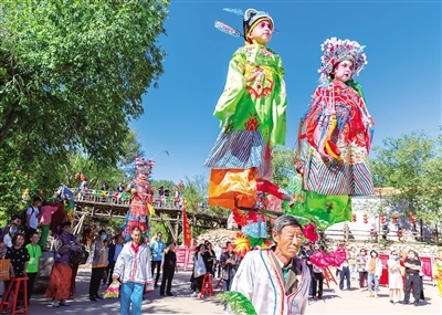 6月13日,民間藝人在內(nèi)蒙古2020年“文化和自然遺產(chǎn)日”非遺宣傳展示系列活動開幕式活動現(xiàn)場表演國家級非物質(zhì)文化遺產(chǎn)“腦閣”。內(nèi)蒙古日報社融媒體記者 王磊 攝