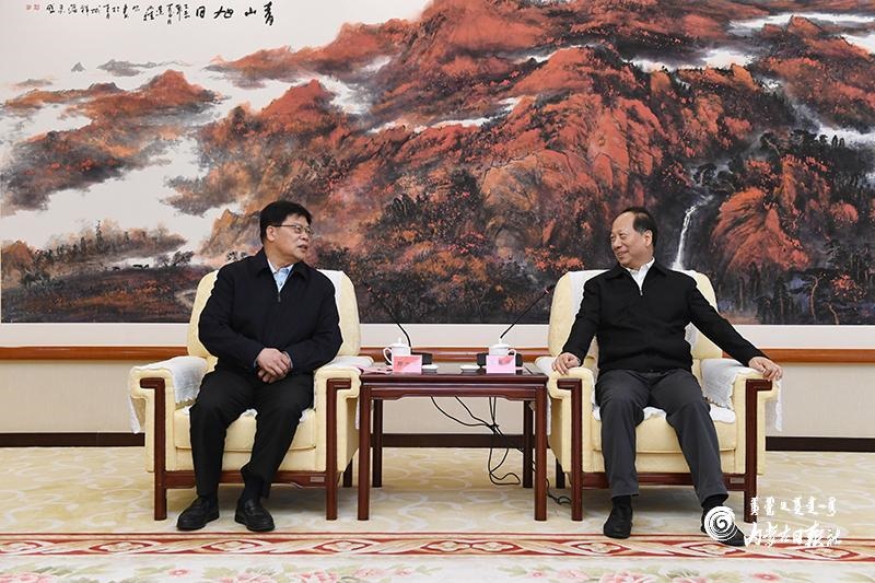 自治區(qū)領(lǐng)導(dǎo)楊偉東、張韶春及有關(guān)部門負(fù)責(zé)同志參加會(huì)見。(內(nèi)蒙古日?qǐng)?bào)記者 章奎)