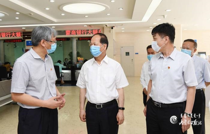 7月13日,自治區(qū)黨委書記、人大常委會主任石泰峰來到蒙商銀行新城支行調(diào)研。內(nèi)蒙古日報記者 袁永紅 攝