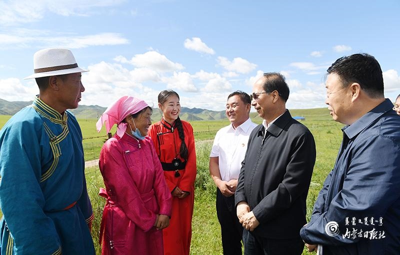 8月11日,自治區(qū)黨委書記、人大常委會主任石泰峰來到興安盟科右前旗烏蘭毛都蘇木,了解草原生態(tài)保護和牧業(yè)發(fā)展情況。內(nèi)蒙古日報記者 袁永紅 攝