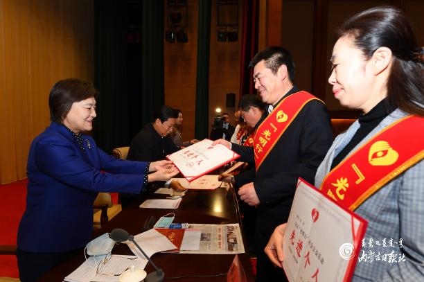 12月14日,全區(qū)“光明行”社會公益活動總結表彰會在呼和浩特舉行。自治區(qū)主席、紅十字會名譽會長、全區(qū)“光明行”社會公益活動組委會主任委員布小林為受表彰代表頒發(fā)榮譽證書。內蒙古日報記者 金泉 攝