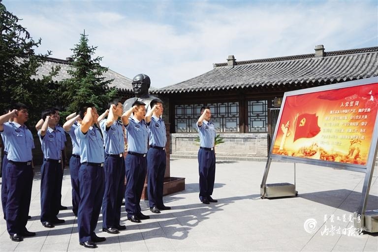 部隊官兵在烏蘭夫故居重溫入黨誓詞。