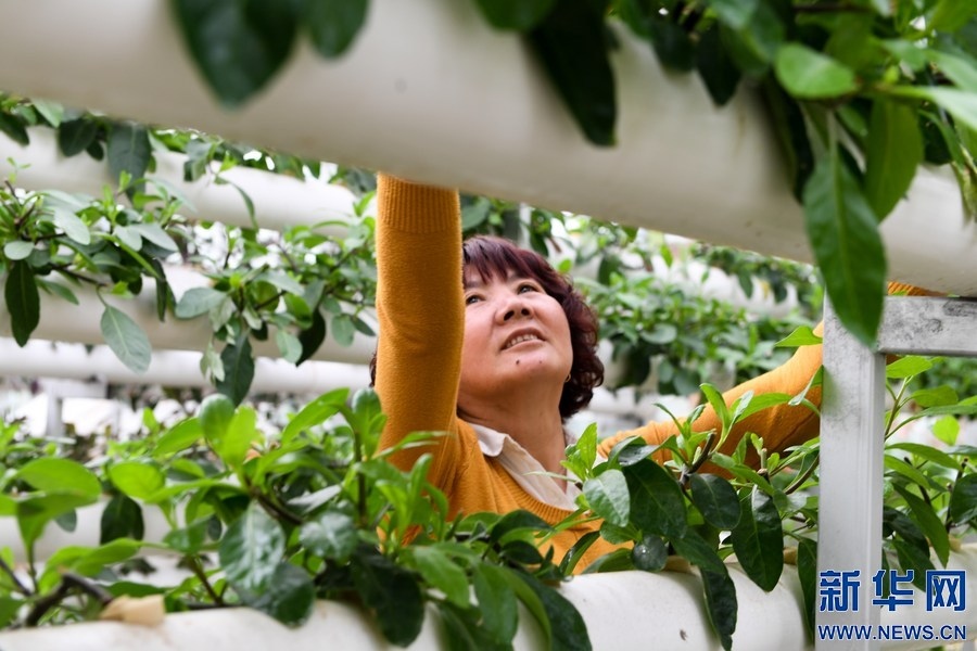 農(nóng)民在內(nèi)蒙古自治區(qū)巴彥淖爾市五原縣隆興昌鎮(zhèn)的一個現(xiàn)代農(nóng)業(yè)試驗(yàn)示范區(qū)內(nèi)采摘無土栽培的蔬菜。新華社記者 劉磊 攝