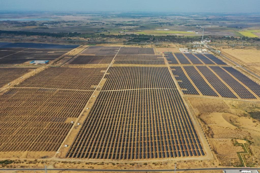 達(dá)拉特旗光伏發(fā)電應(yīng)用領(lǐng)跑基地(無人機(jī)照片)。新華社記者 李志鵬攝