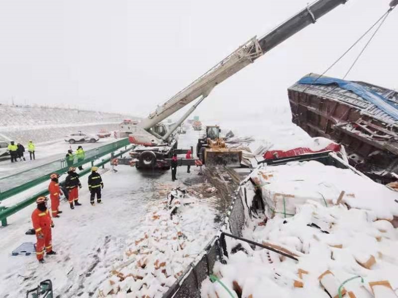 記者當(dāng)晚從內(nèi)蒙古自治區(qū)應(yīng)急管理廳以及烏海市有關(guān)部門了解到,事發(fā)時,1輛重型半掛牽引車因雨雪天氣道路結(jié)冰發(fā)生側(cè)滑,致使后方行駛的另一輛重型半掛車采取措施不及發(fā)生碰撞,繼而引發(fā)多車連環(huán)相撞,致3死2傷。事故發(fā)生后,烏海市公安、消防、交警等部門立即趕赴現(xiàn)場展開救援工作。由于部分大貨車車頭后部天然氣儲罐破損發(fā)生泄漏,給現(xiàn)場處置救援帶來一定難度。消防部門通過破拆救援,成功將傷者抬至安全地帶,移交給現(xiàn)場120醫(yī)護(hù)人員緊急送往就近醫(yī)院治療。截至當(dāng)日24時許,事故現(xiàn)場清理完畢。