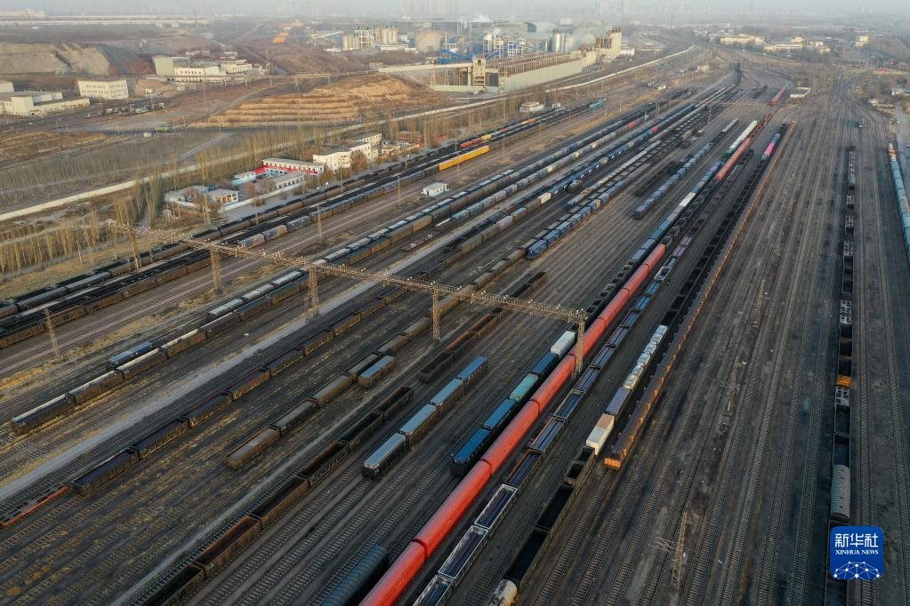 這是11月23日拍攝的中鐵呼和浩特局包頭西站(無人機照片)。作為西北地區(qū)重要的鐵路編組站,包頭西站每天的煤炭運輸量可達3萬噸以上。新華社記者朱文哲攝