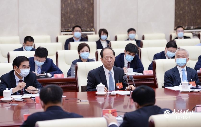 11月28日上午,石泰峰與赤峰市代表團(tuán)代表共同審議黨代會(huì)報(bào)告。內(nèi)蒙古日?qǐng)?bào)社融媒體記者 袁永紅 攝