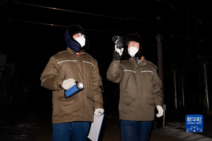 國家電網(wǎng)滿洲里220千伏變電站位于滿洲里市西郊,負(fù)責(zé)給全市三分之一的用戶供電。夜越來越深,“95后”值班員王東亞和同事拿著測溫設(shè)備,開始對戶外輸變電設(shè)備進(jìn)行檢查。他們深一腳淺一腳地踩著雪,仔細(xì)檢查高壓開關(guān)外的伴熱帶是否正常工作?!拔覀兣吕洌O(shè)備更怕冷,天越冷越要加強(qiáng)巡視?!蓖鯑|亞說。