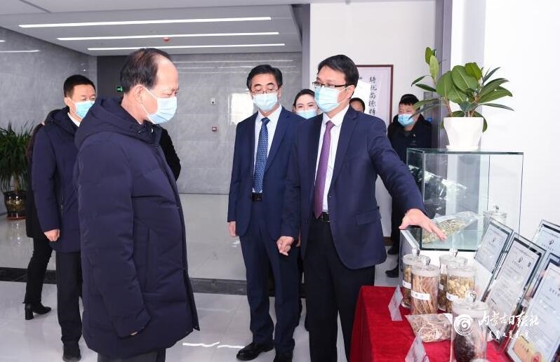 12月16日,自治區(qū)黨委書(shū)記、人大常委會(huì)主任石泰峰來(lái)到鄂爾多斯市高新技術(shù)開(kāi)發(fā)區(qū),了解尚德艾康藥業(yè)項(xiàng)目建設(shè)研發(fā)情況。內(nèi)蒙古日?qǐng)?bào)社融媒體記者 袁永紅 攝