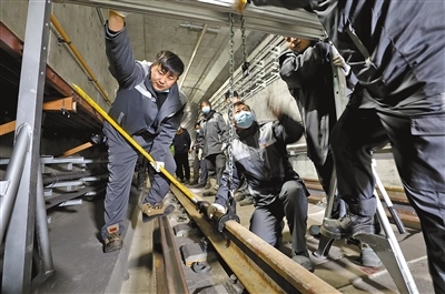 “我們的日常工作主要是對地鐵軌道線路進行周期性檢查和計劃性維修,確保地鐵軌道設(shè)備狀態(tài)良好,保證電客車在線路上安全、平穩(wěn)、不間斷運行。”田智宏對記者說:“維修對象主要是鋼軌和道岔,通過我們的起、撥、改等作業(yè),使得軌道幾何形位保持在標(biāo)準(zhǔn)值范圍內(nèi)?!?/p>