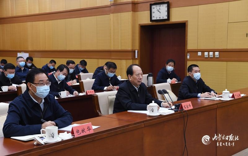 12月31日,自治區(qū)黨委書(shū)記、人大常委會(huì)主任石泰峰主持召開(kāi)口岸疫情防控和通關(guān)情況視頻調(diào)度會(huì)并講話。內(nèi)蒙古日?qǐng)?bào)社融媒體記者 袁永紅 攝