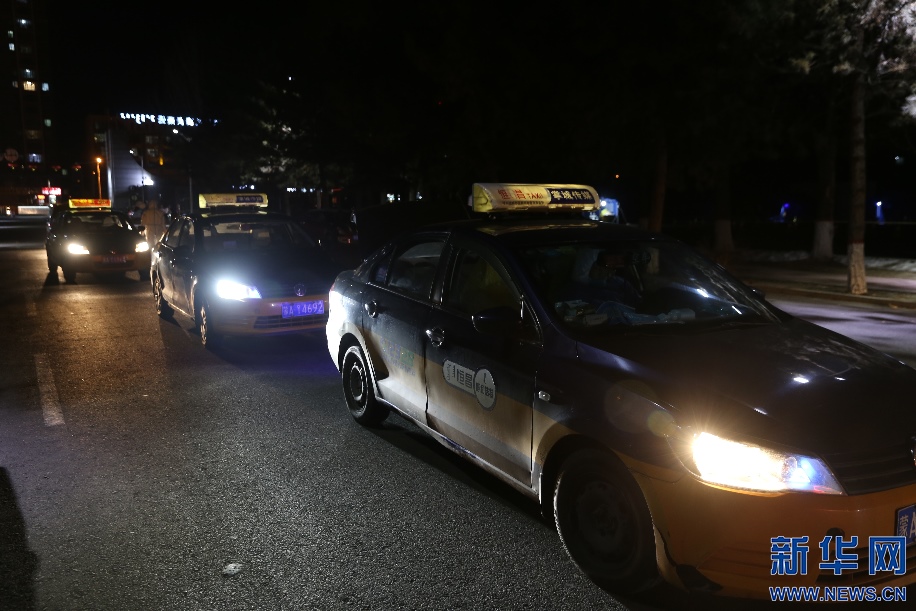 2月20日晚9點(diǎn),前往指定地點(diǎn)運(yùn)送樣本的出租車排起了長隊(duì),完成這一次運(yùn)送,司機(jī)們當(dāng)天的任務(wù)就完成了。新華網(wǎng)發(fā) 李倩攝