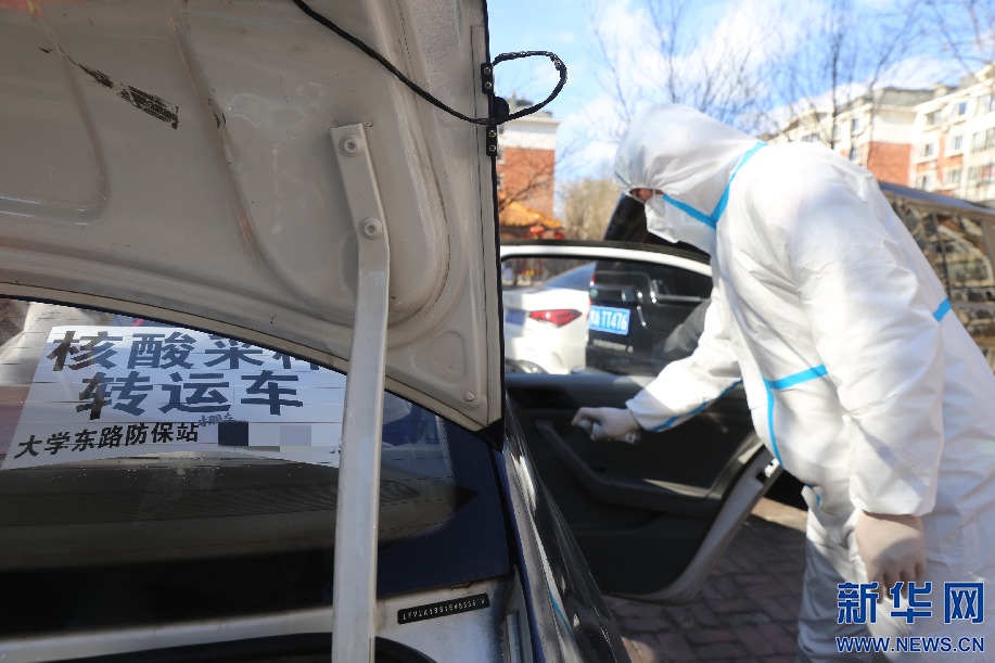 到達(dá)核酸采樣點(diǎn)后,籍東斌在工作人員取樣本間隙對車輛進(jìn)行消殺。核酸樣本轉(zhuǎn)運(yùn)存在著一定風(fēng)險(xiǎn)性,籍東斌說,只要按要求做好防護(hù),按規(guī)定完成工作,就沒什么問題。新華網(wǎng)發(fā) 李倩攝