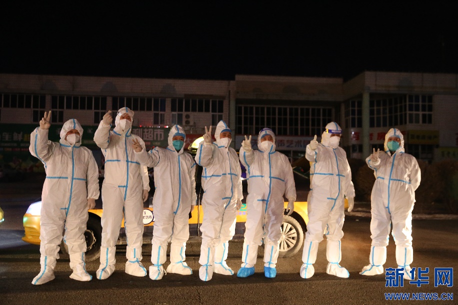 收工之前,現(xiàn)場部分志愿者司機(jī)們打出代表勝利的手勢,希望疫情早日散去,青城重現(xiàn)活力。新華網(wǎng)發(fā) 李倩攝