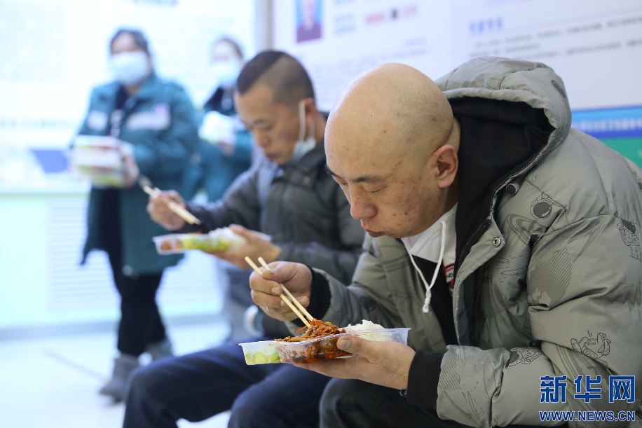 用餐時(shí)間也是轉(zhuǎn)運(yùn)司機(jī)們短暫的休整時(shí)間。吃過午飯,籍東斌又要馬上投入到下一輪緊張的工作中。新華網(wǎng)發(fā) 李倩攝