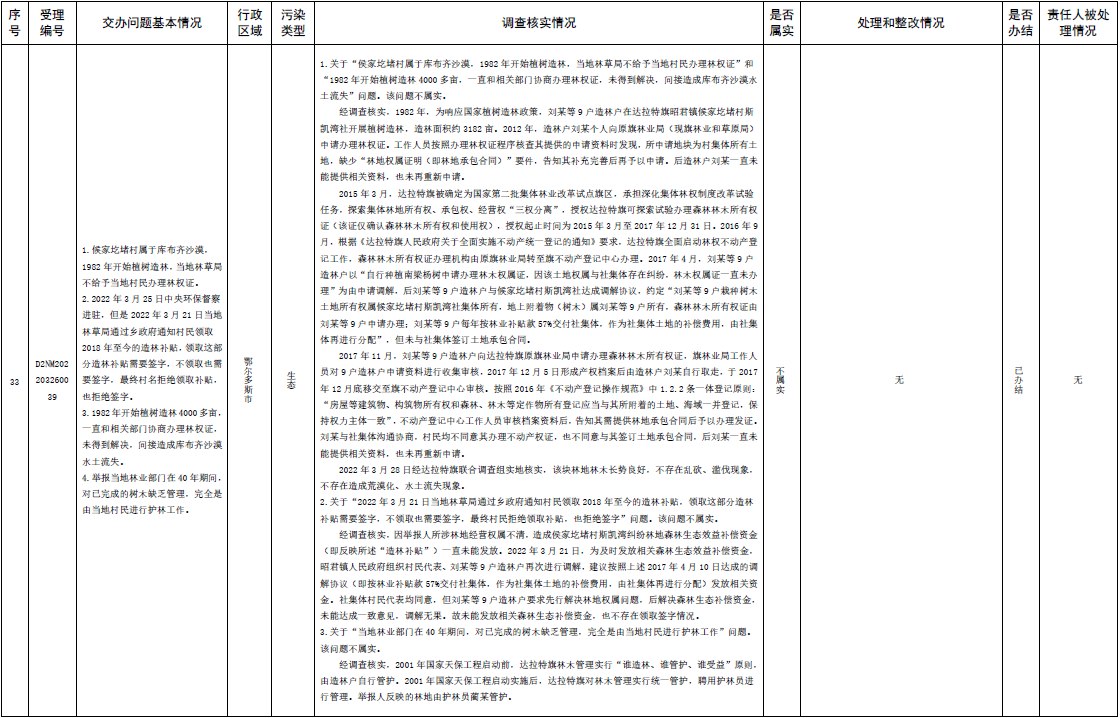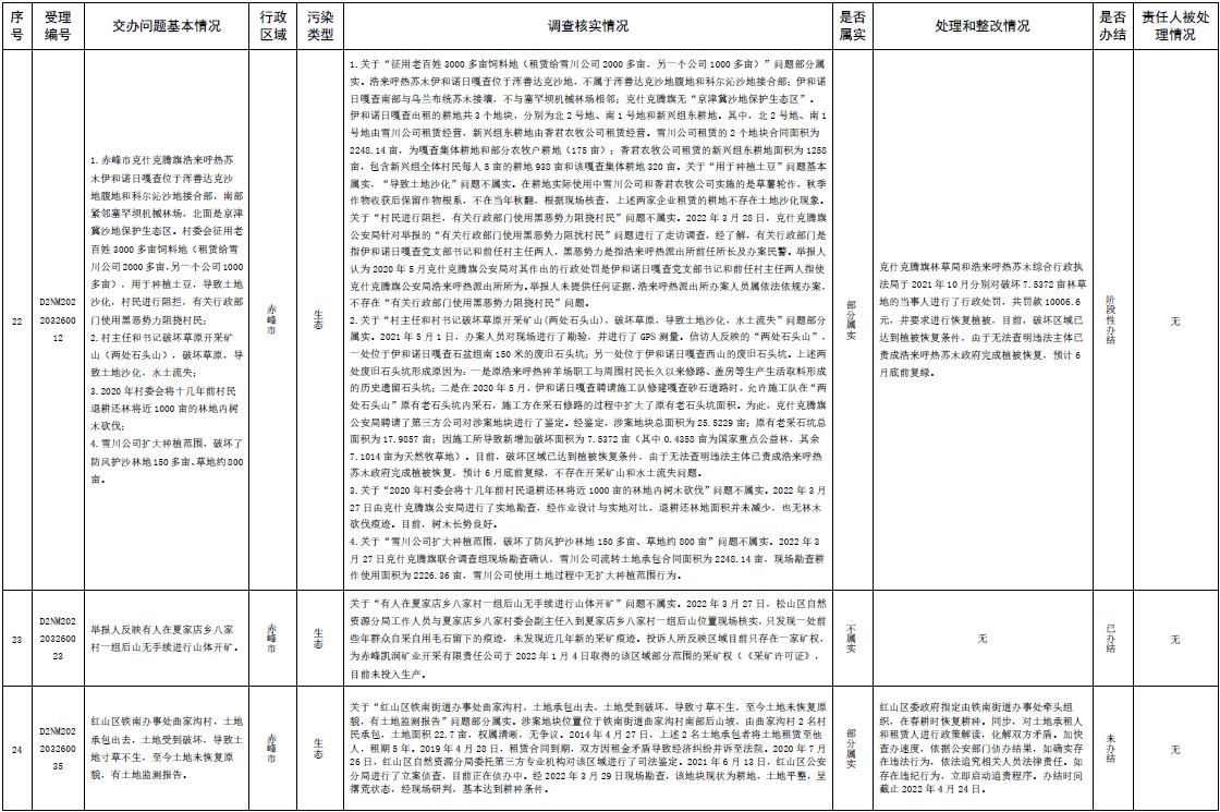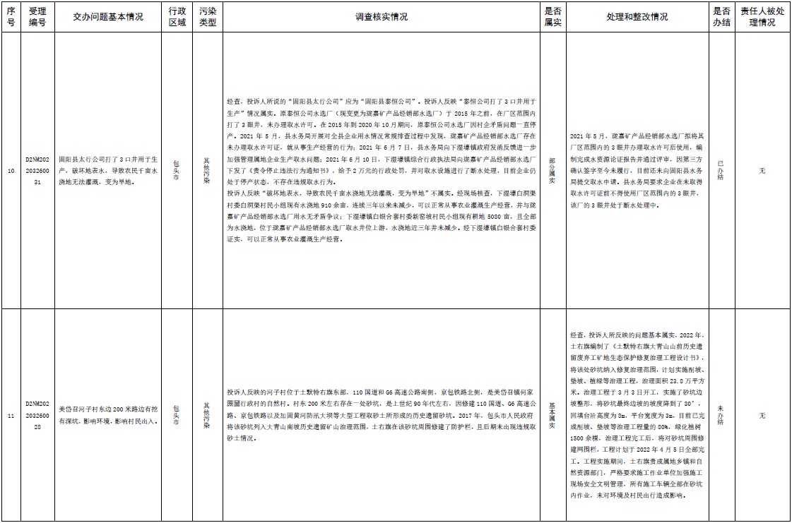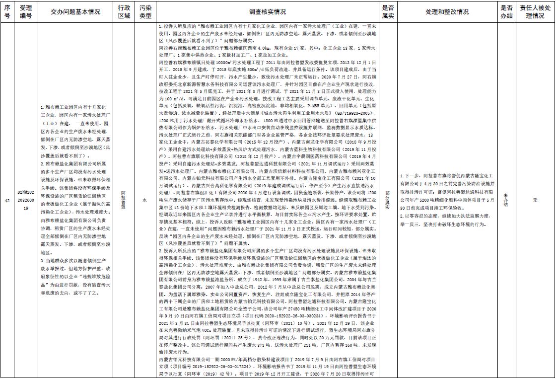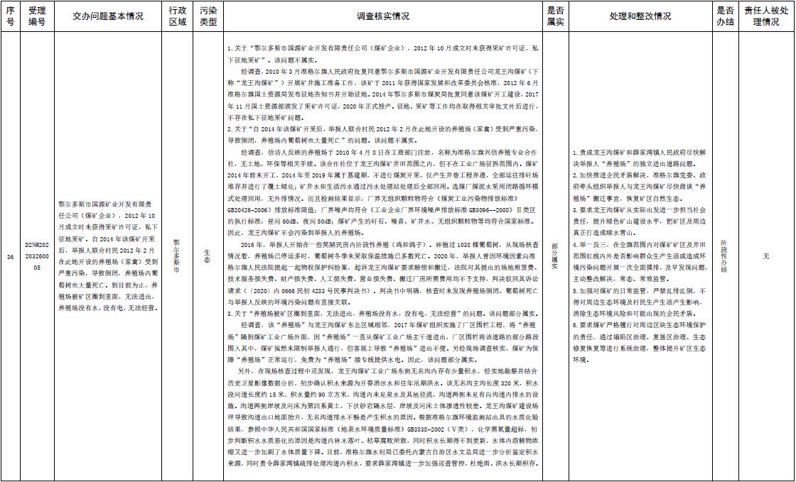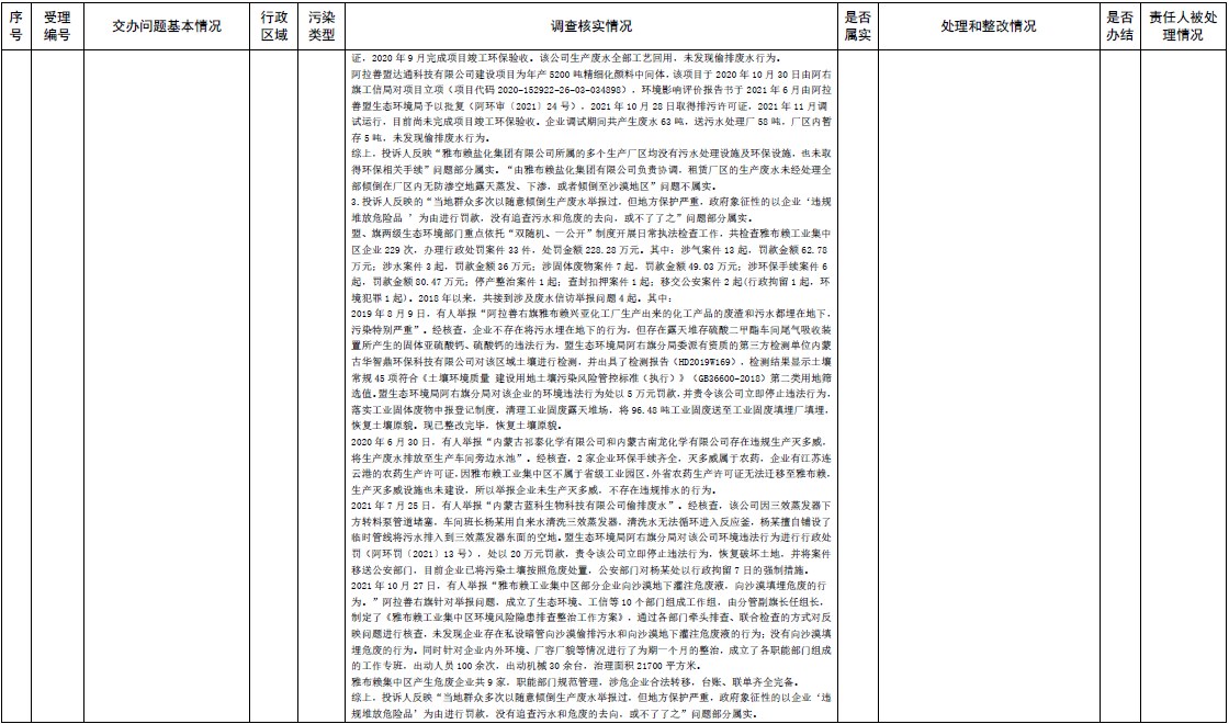 原標(biāo)題:中央第三生態(tài)環(huán)境保護(hù)督察組交辦內(nèi)蒙古自治區(qū)第二批42件群眾信訪舉報(bào)件辦理情況