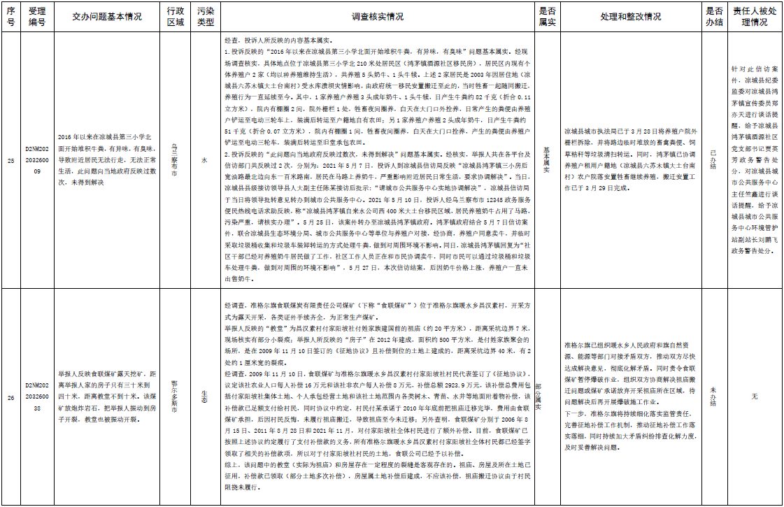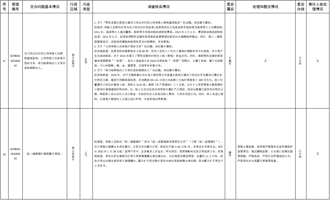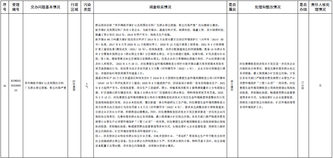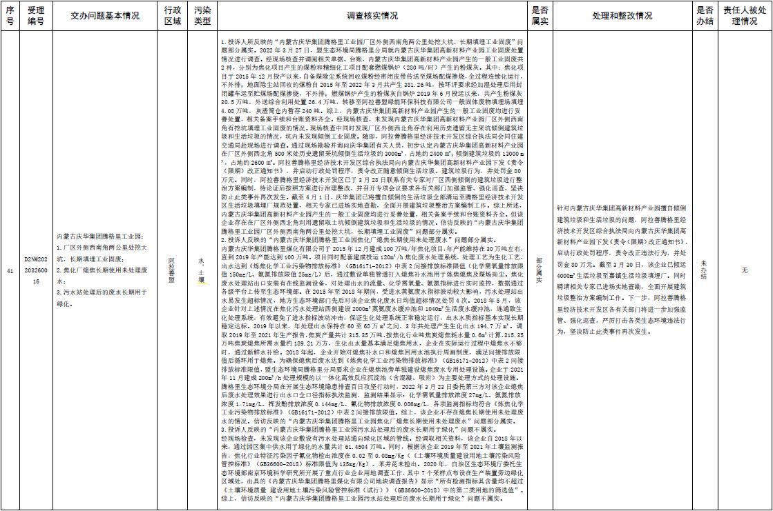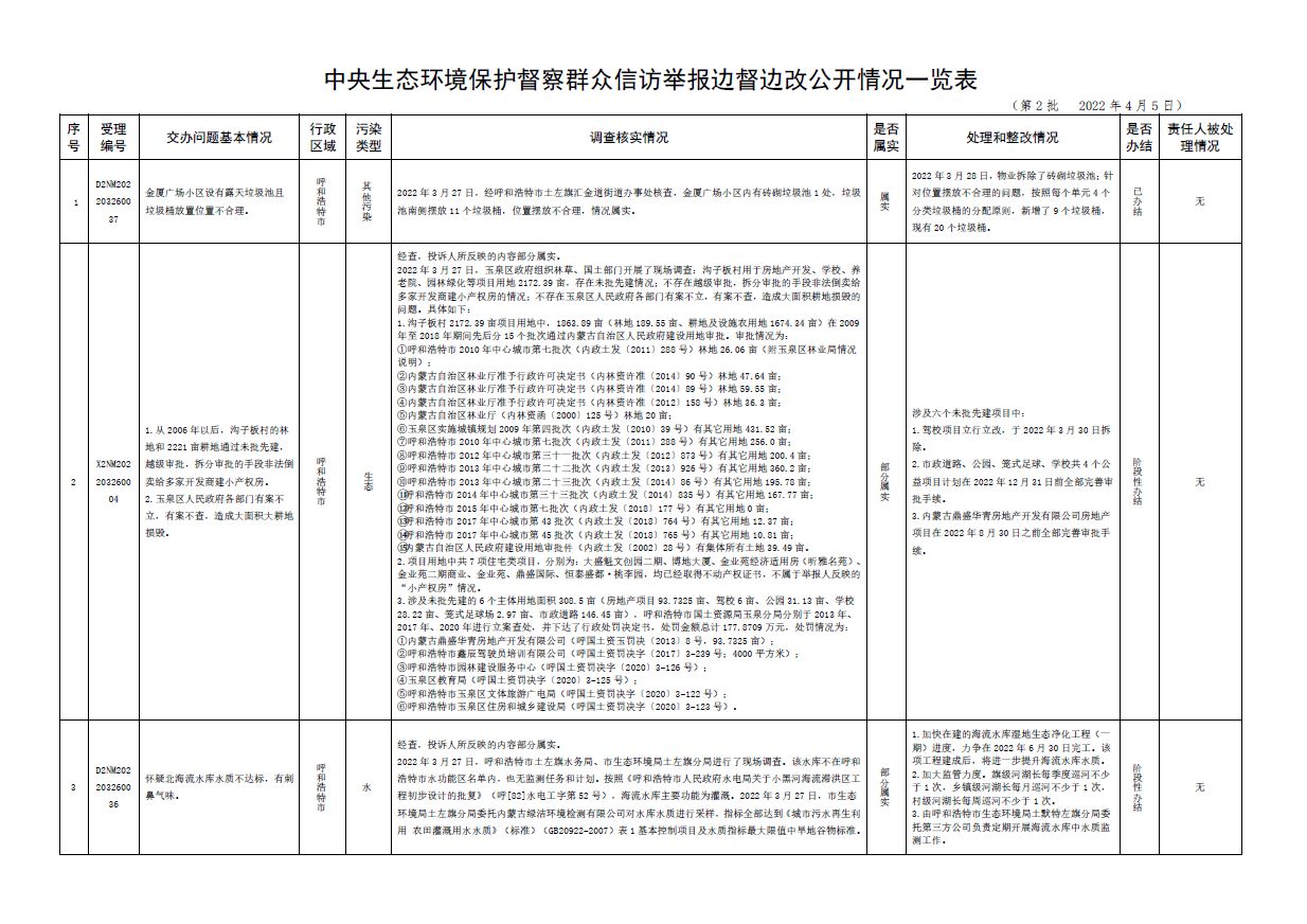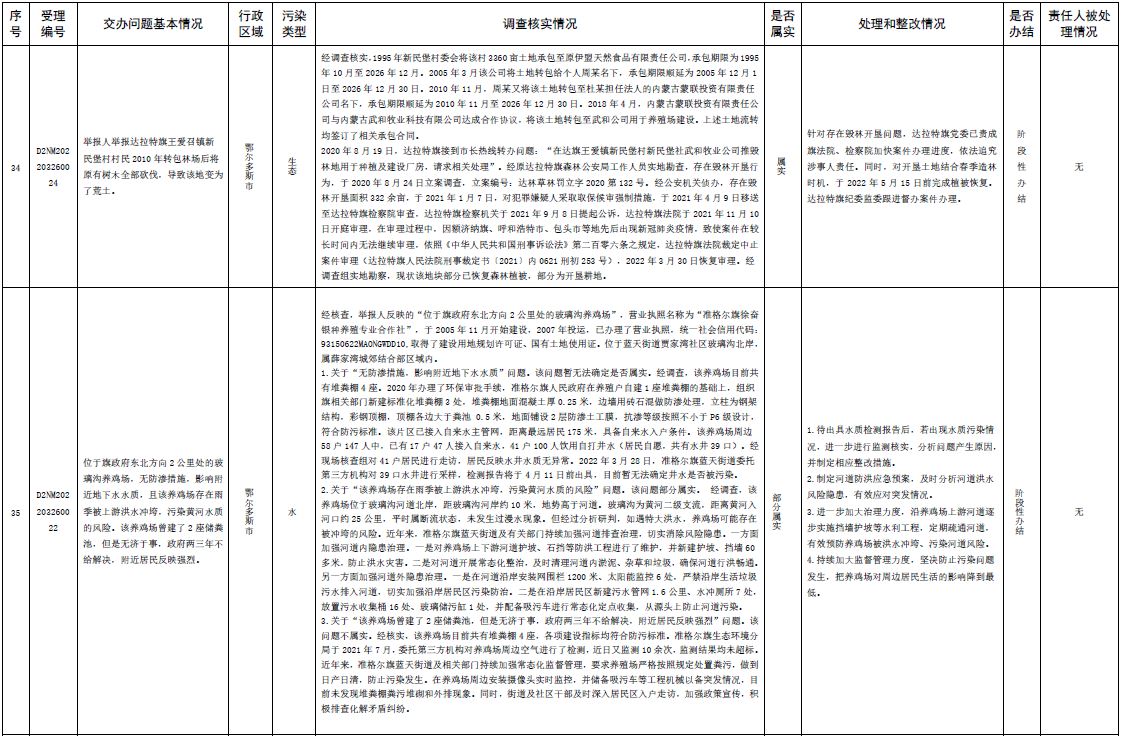原標(biāo)題:中央第三生態(tài)環(huán)境保護(hù)督察組交辦內(nèi)蒙古自治區(qū)第二批42件群眾信訪舉報(bào)件辦理情況