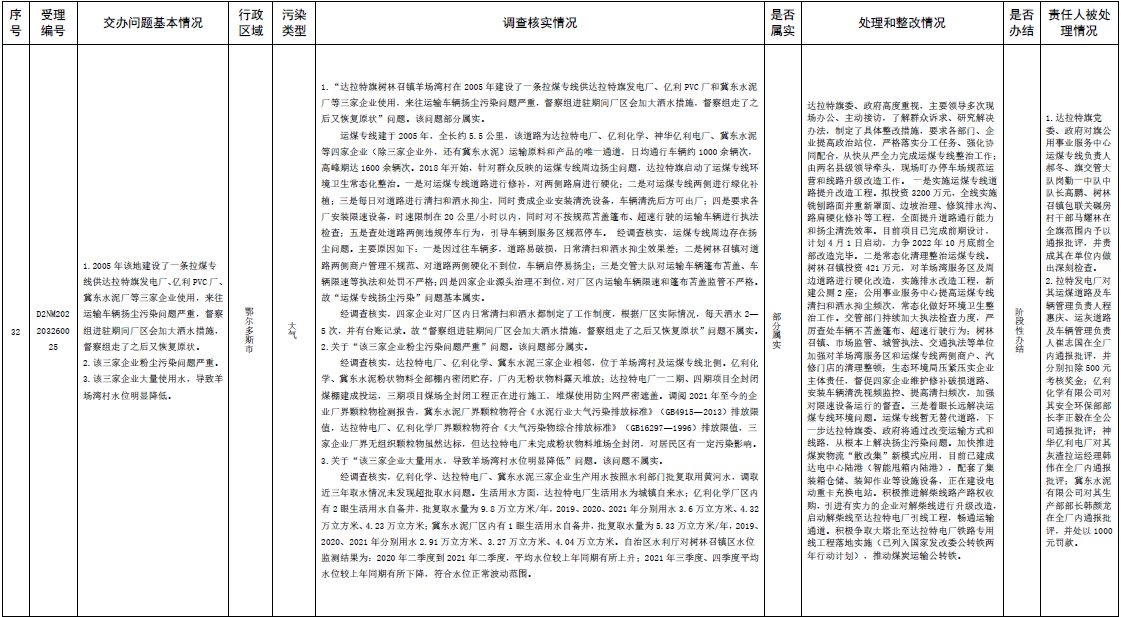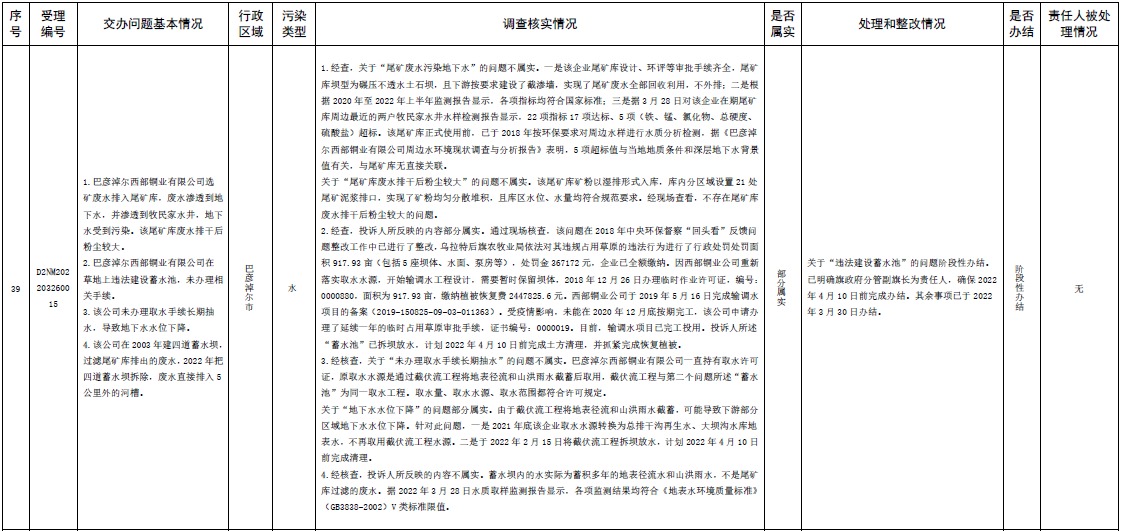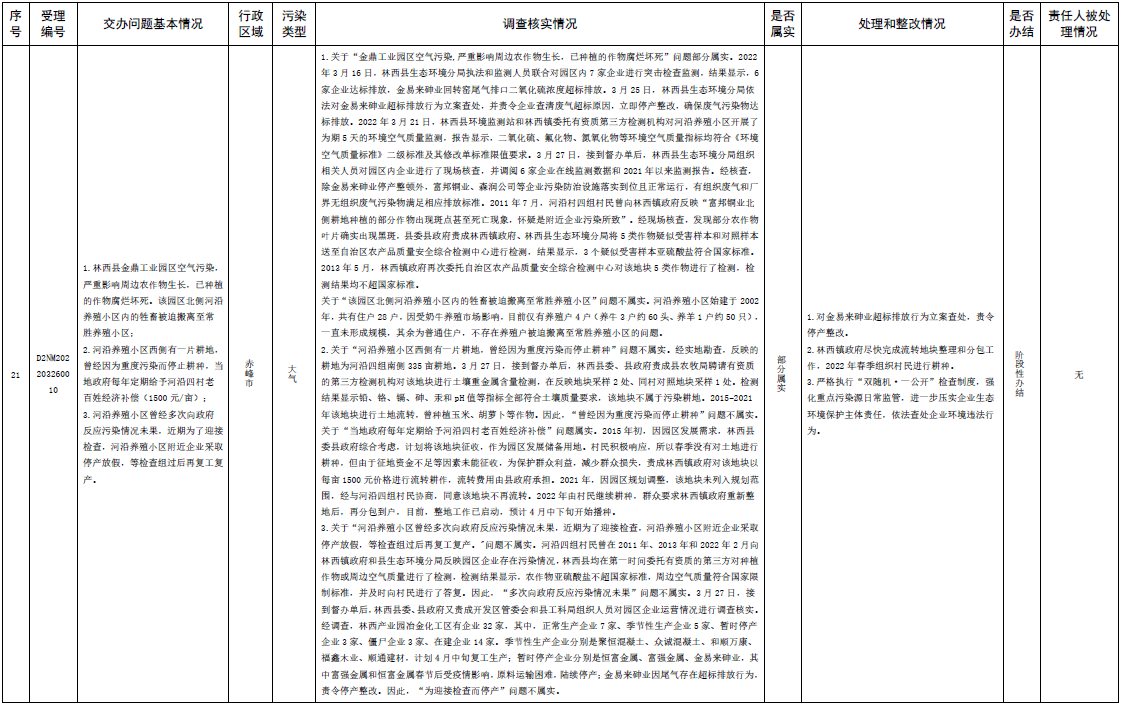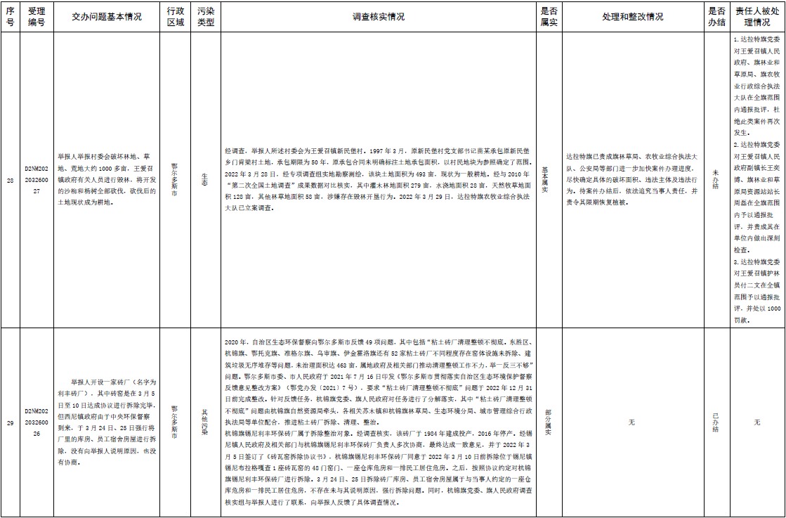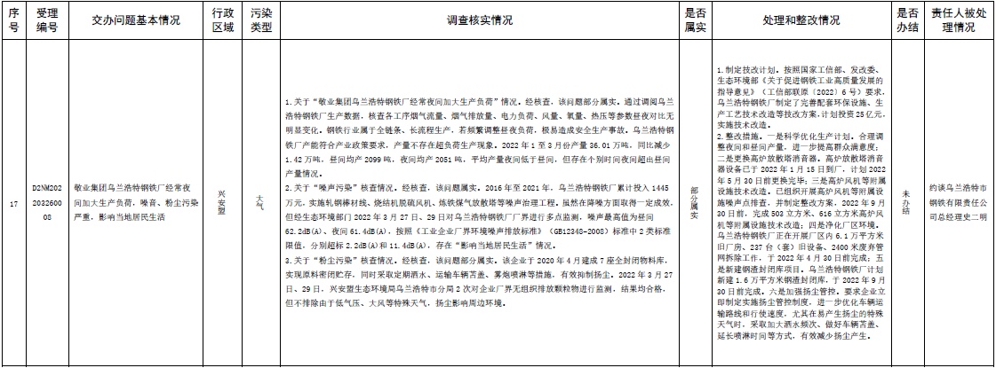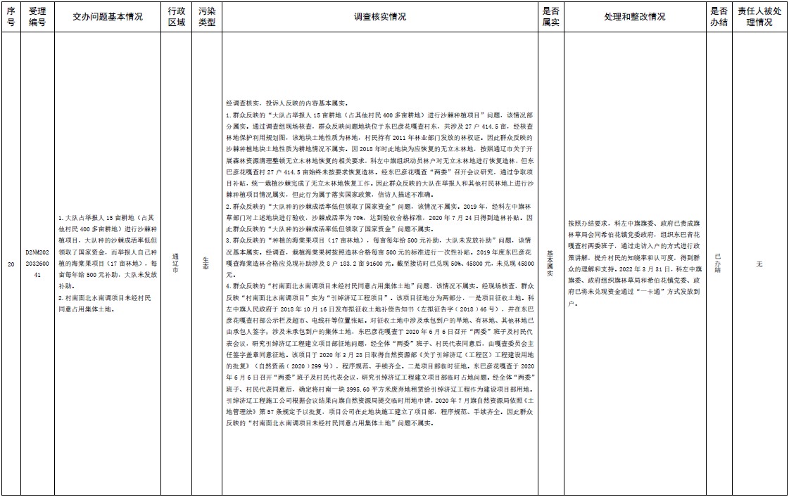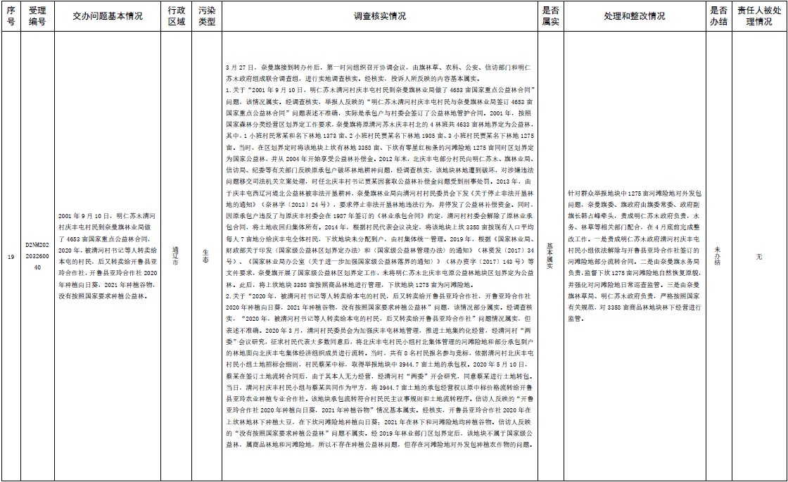 原標(biāo)題:中央第三生態(tài)環(huán)境保護(hù)督察組交辦內(nèi)蒙古自治區(qū)第二批42件群眾信訪舉報(bào)件辦理情況