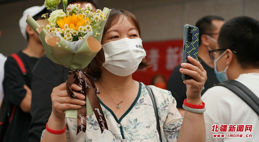 6月8日下午5時(shí)30分,呼和浩特市第二中學(xué)考點(diǎn)外站滿(mǎn)了考生親屬、朋友。他們或手捧鮮花、或拉上慶祝橫幅,等待考生們“凱旋”。