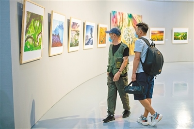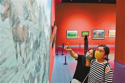 “美麗中國·內(nèi)蒙古形象”主題美術(shù)作品展聚焦“兩個(gè)打造”,119幅美術(shù)作品以全區(qū)12個(gè)盟市獨(dú)特的自然風(fēng)光、人文景觀、生態(tài)面貌為底色,描繪內(nèi)蒙古草之茂、林之郁、湖之美、水之秀、田之沃、沙之魅,全面展示了內(nèi)蒙古真善美的形象。記者 王磊 攝